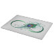 The symbol of infinity with a bright, green, artistic peacock feather on a white background. Tattoo style.