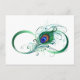 The symbol of infinity with a bright, green, artistic peacock feather on a white background. Tattoo style.
