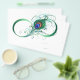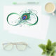 The symbol of infinity with a bright, green, artistic peacock feather on a white background. Tattoo style.