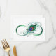 The symbol of infinity with a bright, green, artistic peacock feather on a white background. Tattoo style.