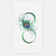 The symbol of infinity with a bright, green, artistic peacock feather on a white background. Tattoo style.