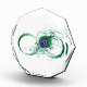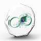 The symbol of infinity with a bright, green, artistic peacock feather on a white background. Tattoo style.