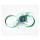 The symbol of infinity with a bright, green, artistic peacock feather on a white background. Tattoo style.