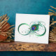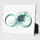The symbol of infinity with a bright, green, artistic peacock feather on a white background. Tattoo style.