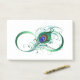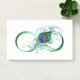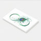 The symbol of infinity with a bright, green, artistic peacock feather on a white background. Tattoo style.