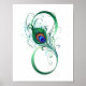 The symbol of infinity with a bright, green, artistic peacock feather on a white background. Tattoo style.