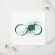 The symbol of infinity with a bright, green, artistic peacock feather on a white background. Tattoo style.