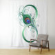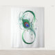 The symbol of infinity with a bright, green, artistic peacock feather on a white background. Tattoo style.