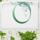 The symbol of infinity with a bright, green, artistic peacock feather on a white background. Tattoo style.