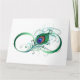 The symbol of infinity with a bright, green, artistic peacock feather on a white background. Tattoo style.