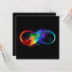 Artistically drawn infinity symbol with beautiful rainbow feather on white background. Tattoo style.