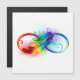 Artistically drawn infinity symbol with beautiful rainbow feather on white background. Tattoo style.