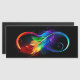 Artistically drawn infinity symbol with beautiful rainbow feather on white background. Tattoo style.