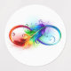 Artistically drawn infinity symbol with beautiful rainbow feather on white background. Tattoo style.