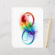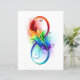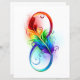 Artistically drawn infinity symbol with beautiful rainbow feather on white background. Tattoo style.