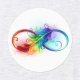 Artistically drawn infinity symbol with beautiful rainbow feather on white background. Tattoo style.