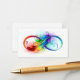 Artistically drawn infinity symbol with beautiful rainbow feather on white background. Tattoo style.