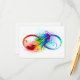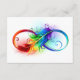 Artistically drawn infinity symbol with beautiful rainbow feather on white background. Tattoo style.
