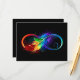 Artistically drawn infinity symbol with beautiful rainbow feather on white background. Tattoo style.