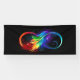 Artistically drawn infinity symbol with beautiful rainbow feather on white background. Tattoo style.