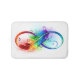 Artistically drawn infinity symbol with beautiful rainbow feather on white background. Tattoo style.