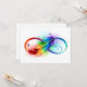 Artistically drawn infinity symbol with beautiful rainbow feather on white background. Tattoo style.