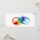 Artistically drawn infinity symbol with beautiful rainbow feather on white background. Tattoo style.