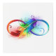 Artistically drawn infinity symbol with beautiful rainbow feather on white background. Tattoo style.