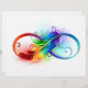Artistically drawn infinity symbol with beautiful rainbow feather on white background. Tattoo style.