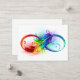 Artistically drawn infinity symbol with beautiful rainbow feather on white background. Tattoo style.
