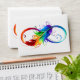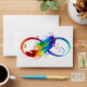 Artistically drawn infinity symbol with beautiful rainbow feather on white background. Tattoo style.