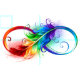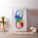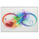 Artistically drawn infinity symbol with beautiful rainbow feather on white background. Tattoo style.