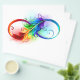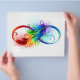 Artistically drawn infinity symbol with beautiful rainbow feather on white background. Tattoo style.