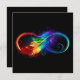 Artistically drawn infinity symbol with beautiful rainbow feather on white background. Tattoo style.