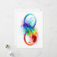 Artistically drawn infinity symbol with beautiful rainbow feather on white background. Tattoo style.
