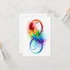 Artistically drawn infinity symbol with beautiful rainbow feather on white background. Tattoo style.