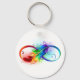 Artistically drawn infinity symbol with beautiful rainbow feather on white background. Tattoo style.