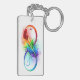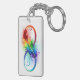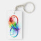 Artistically drawn infinity symbol with beautiful rainbow feather on white background. Tattoo style.