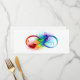 Artistically drawn infinity symbol with beautiful rainbow feather on white background. Tattoo style.