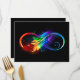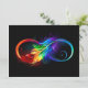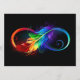 Artistically drawn infinity symbol with beautiful rainbow feather on white background. Tattoo style.