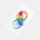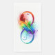Artistically drawn infinity symbol with beautiful rainbow feather on white background. Tattoo style.