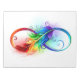 Artistically drawn infinity symbol with beautiful rainbow feather on white background. Tattoo style.