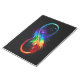 Artistically drawn infinity symbol with beautiful rainbow feather on white background. Tattoo style.
