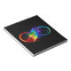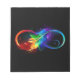 Artistically drawn infinity symbol with beautiful rainbow feather on white background. Tattoo style.