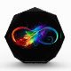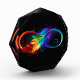 Artistically drawn infinity symbol with beautiful rainbow feather on white background. Tattoo style.