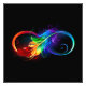 Artistically drawn infinity symbol with beautiful rainbow feather on white background. Tattoo style.