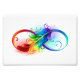 Artistically drawn infinity symbol with beautiful rainbow feather on white background. Tattoo style.