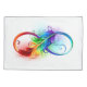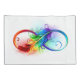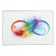 Artistically drawn infinity symbol with beautiful rainbow feather on white background. Tattoo style.