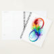 Artistically drawn infinity symbol with beautiful rainbow feather on white background. Tattoo style.
