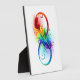 Artistically drawn infinity symbol with beautiful rainbow feather on white background. Tattoo style.